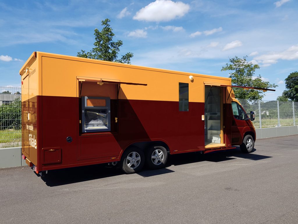 Kaum etwas prägt das Leben in unserer globalisierten Gesellschaft so sehr wie der Megatrend Mobilität. Das Modell der mobilen Bankfiliale an sich ist keinesfalls neu. Nun erfährt das Konzept – einerseits durch das Filialsterben, aber auch durch die Vielseitigkeit der Möglichkeiten einer Bank an verschiedenen Veranstaltungen vor Ort präsent zu sein – einen neuen Aufschwung.