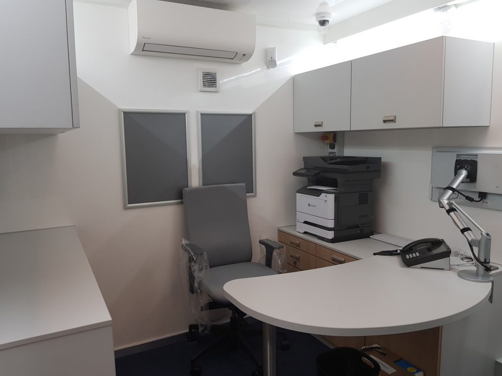 Modernste Technologien der Sicherheit und real-time Überwachung, sowie auch andere Features, wie z.B. Selbstnivellierung des Fahrzeuges sind auf Wunsch installierbar.Die Arbeitsplätze im Fahrzeug werden nach den Richtlinien des Arbeitsschutzes konzipiert. Helle freundliche Farben sorgen für ein angenehmes Arbeitsumfeld. Die Beleuchtung mit LED-Technologie spart Strom.