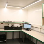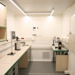 Laborraum von ca. 5,50 m bis 8,50 m Länge und ca. 2,50 m Breite.